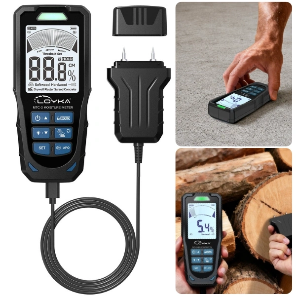 LOYKA MTC-3 Manyetik ve İğne Problu 2-in-1 Nem Ölçer, ahşap ve beton gibi yüzeylerde nem seviyesini hızlı ve hassas bir şekilde ölçmek için ideal bir cihazdır.