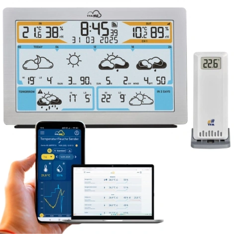 TFA 35.8100.54 WiFi Hava Tahminli Kablosuz Hava Durumu İstasyonu, hava durumu takibini kolaylaştırır. ID-02 sensörü ile birlikte gelir ve kullanıcıların çevresel koşulları izlemelerine olanak tanır. Ürün, Lab. Cihazları kategorisinde yer alan Hava Kalitesi Ölçüm Cihazları arasında öne çıkar.
